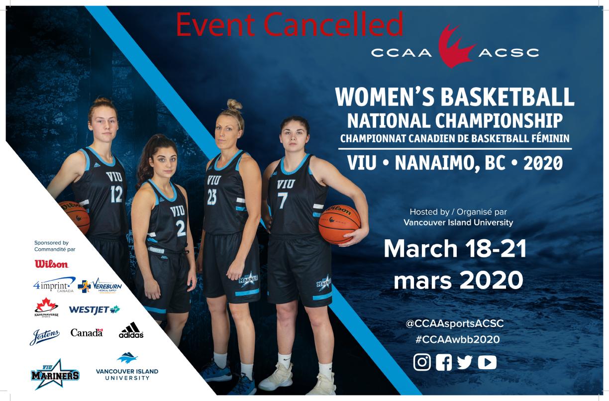"Due to the ongoing developments in the COVID-19 pandemic, the Canadian Collegiate Athletic Association Board of Directors are announcing their unanimous decision to cancel the 2020 CCAA Men's & Women's Basketball National Championships. The safety of our student-athletes is our priority and we will continue to closely monitor the CCAA Championships that are currently taking place."