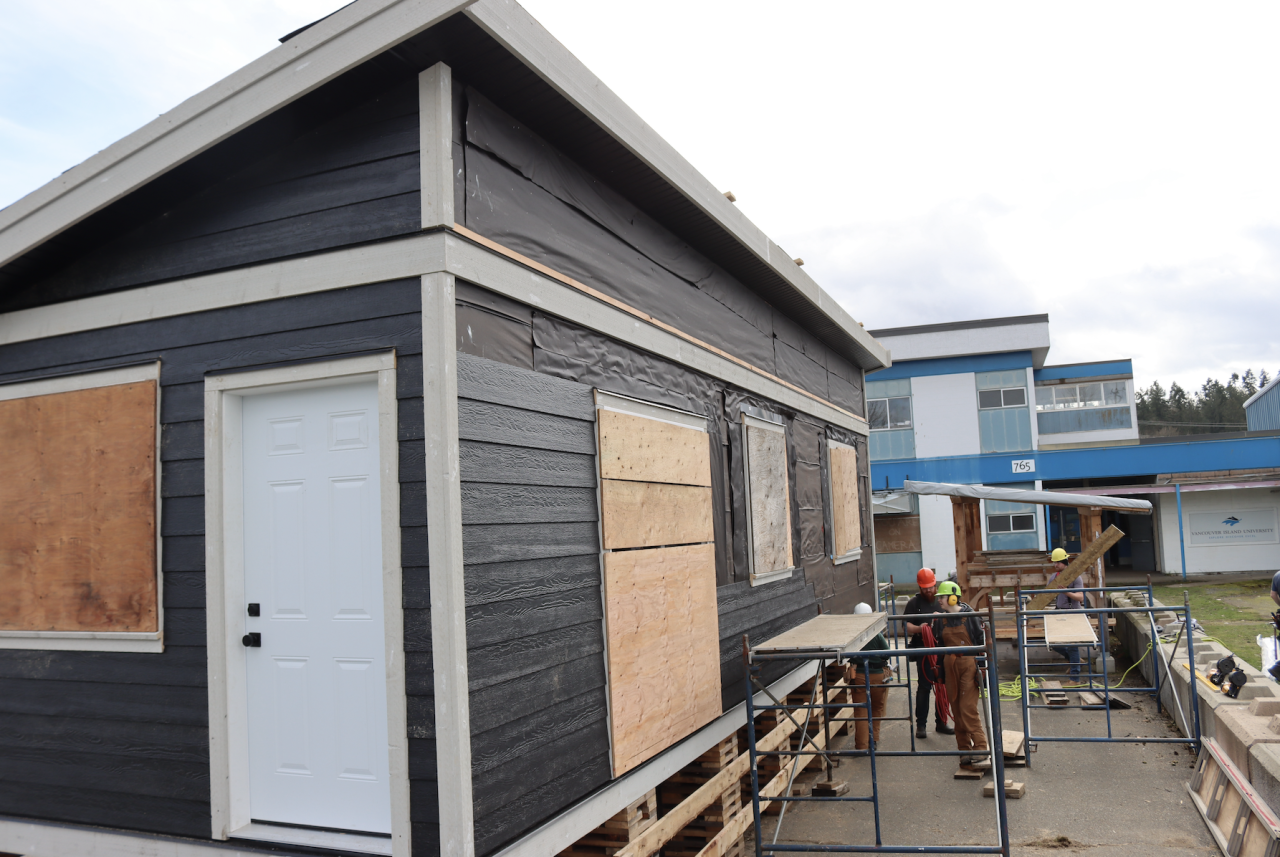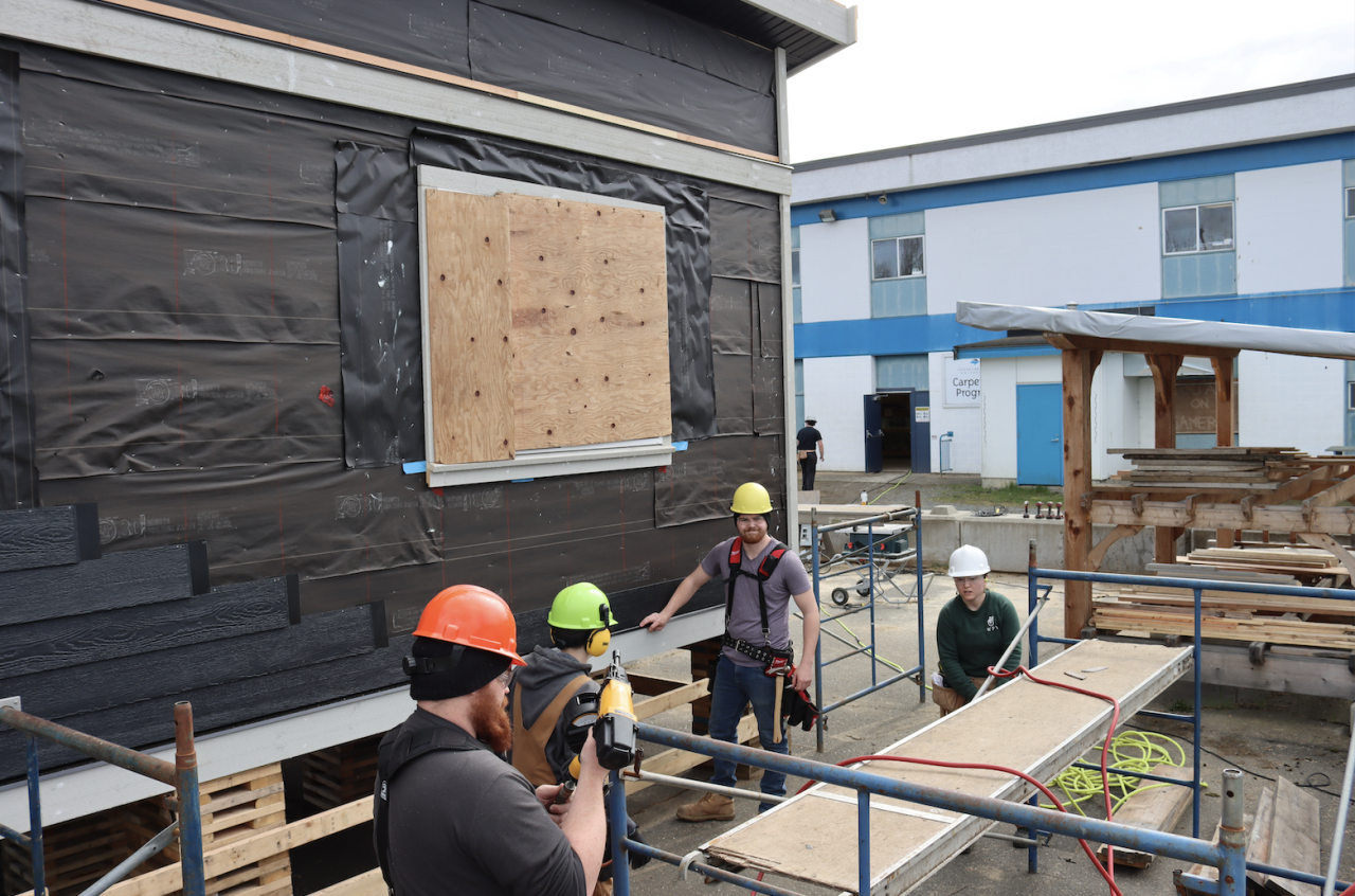 The students are building a tiny home at Vancouver Island University’s (VIU’s) Cowichan’s Trades Centre.