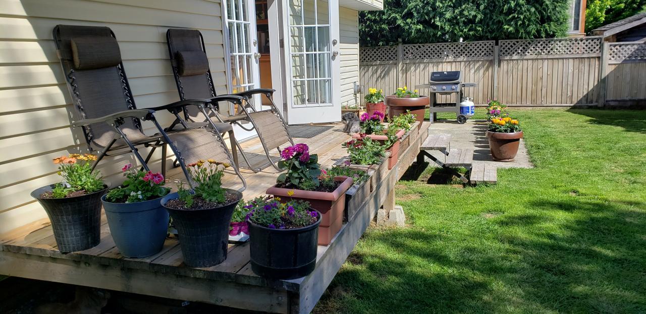 Coffee breaks in the morning are now outside with all the flower planters on the little back deck.