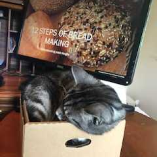 Although I know we probably have more pet pictures than you can shake a stick at, I thought I'd share this. Since Day One, my cat has been hovering around my desk trying to sit on my lap, acting like an overall needy pain. I finally figured it out! Put a box on my desk and now he sleeps there pretty much most of the day, my students ask everyday "How's Bilbo? Is he on time for class?"