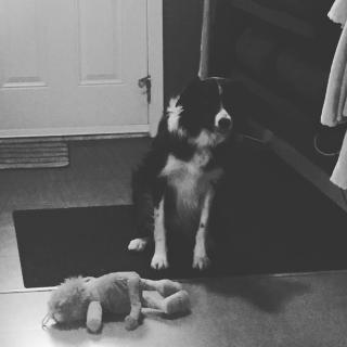 Our dog Luna goes for super long walks or bike rides (20+km 3-4 x per week) with my husband while I work. She loves to play when home and I enjoy my lunch breaks even more when I head outside with her.